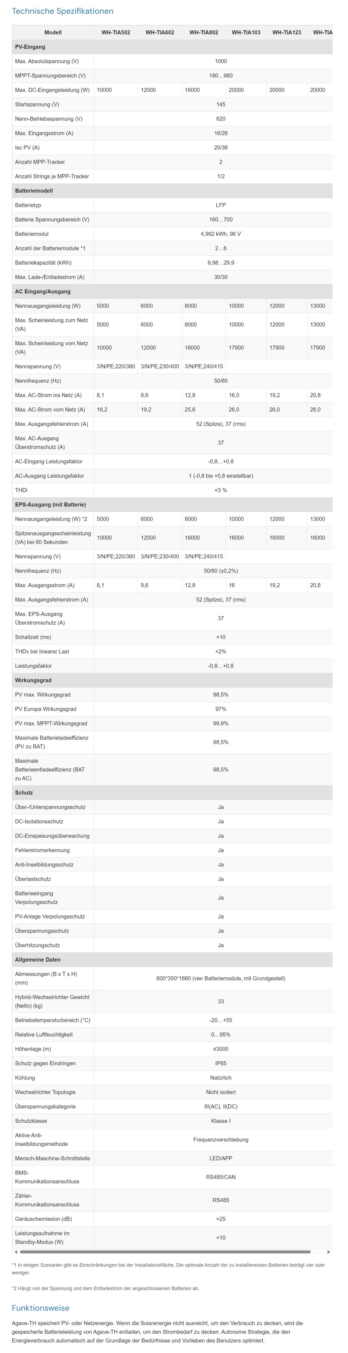Agave-TH, ein hocheffizientes dreiphasiges Hochspannungs-Hybrid-All-in-One-BESS. Immer bereit zur Aufrüstung Ihres Hauses und Ihres Unternehmens, bessere Funktion für eine umfangreichere Nutzung sauberer Energie.